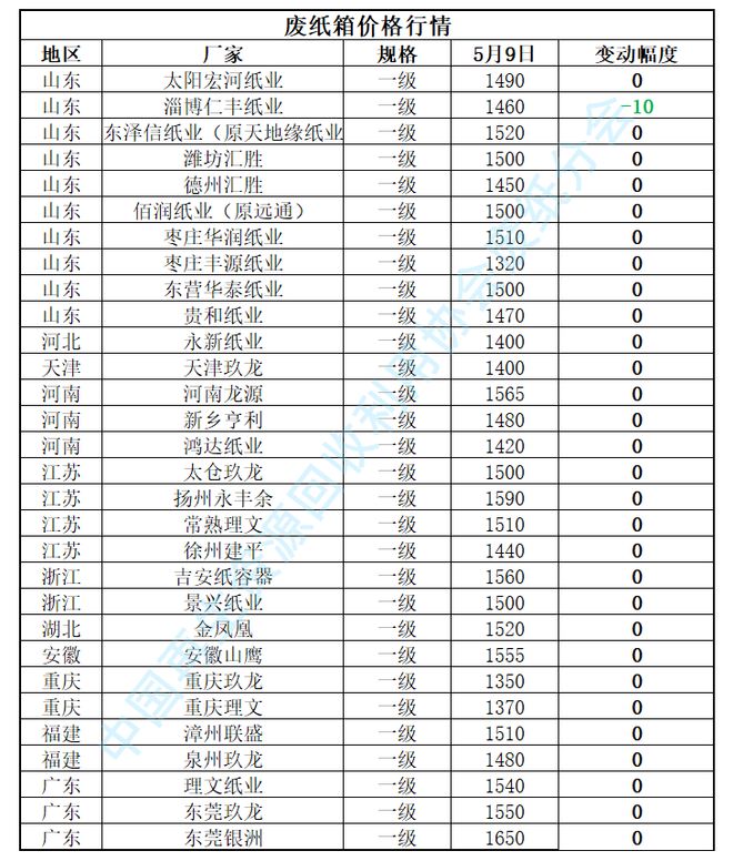 (以上价格表中,均为各纸厂价格,红色为上涨,绿色为下跌,黑色为纸厂或网友指正的价格) (新乡亨利价格为开具增值税普通的收购价格)